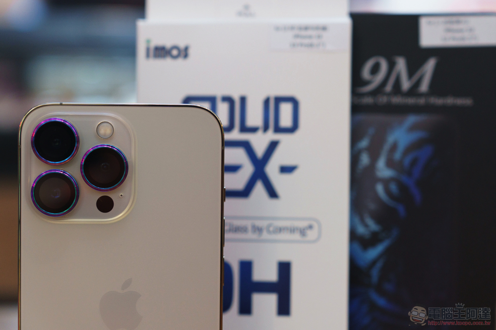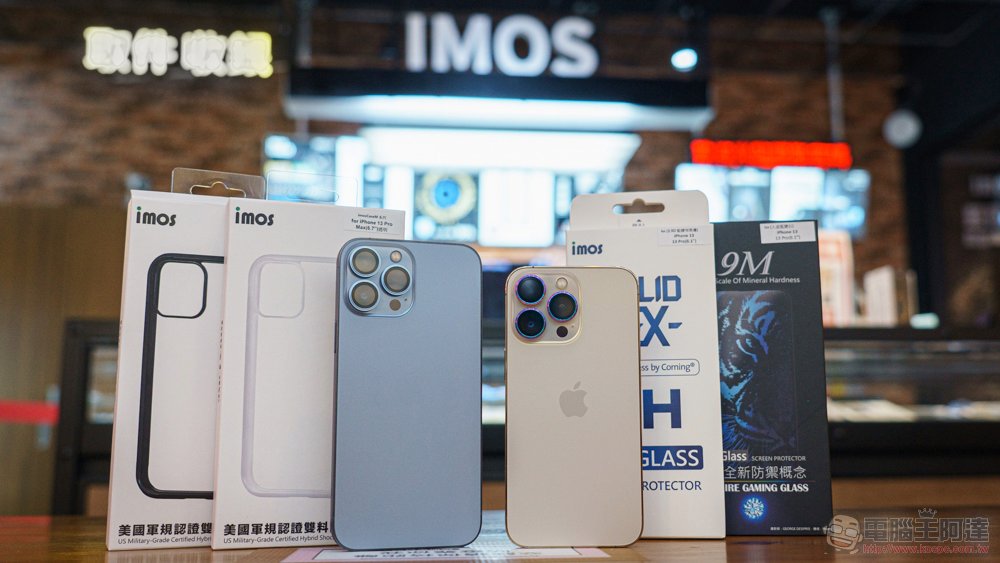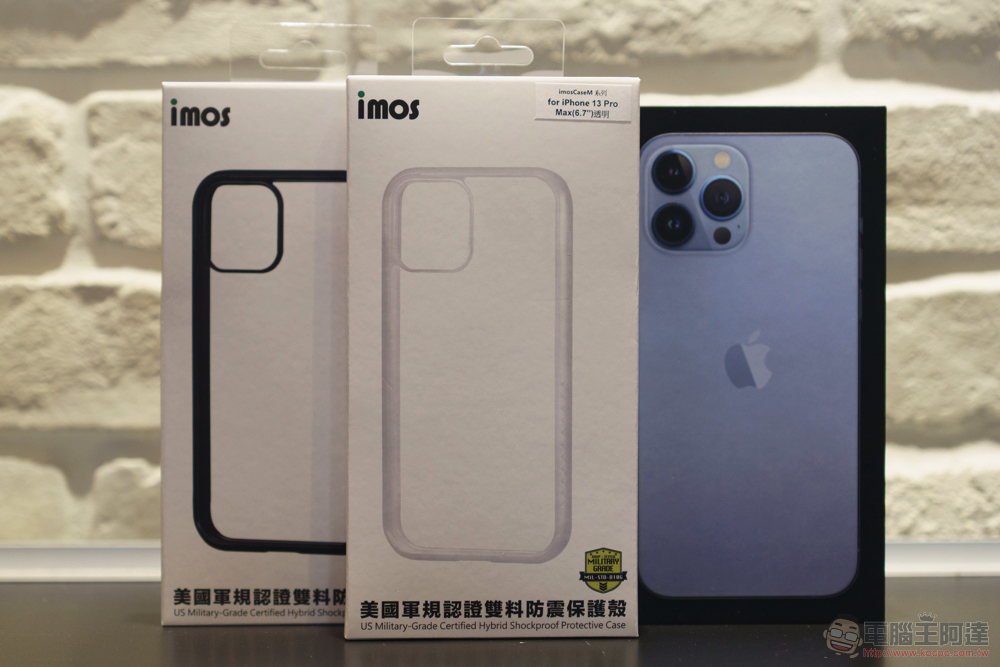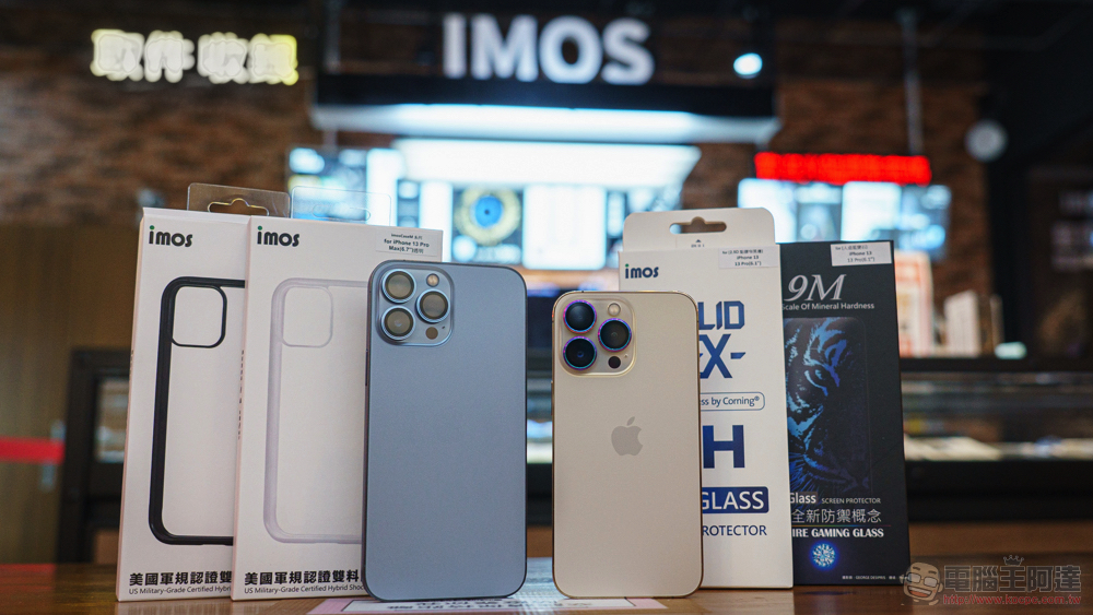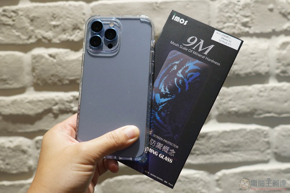 針對今年的 iPhone 13,imos 準備了「康寧玻璃保護貼」、「藍寶石螢幕保護貼」、「藍寶石金屬框鏡頭保護貼」及「軍規保護殼全防護」的全套配件 - 沒錯,連軍規防摔的殼都有,真的是防護得很徹底。
