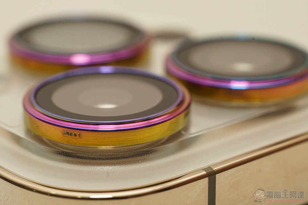 ▲圖:imos藍寶石金屬框鏡頭保護貼邊緣皆有刻上防偽辨識標。獨一無二的「鈦燒」鏡頭環,也能顯示使用者的獨特風格。