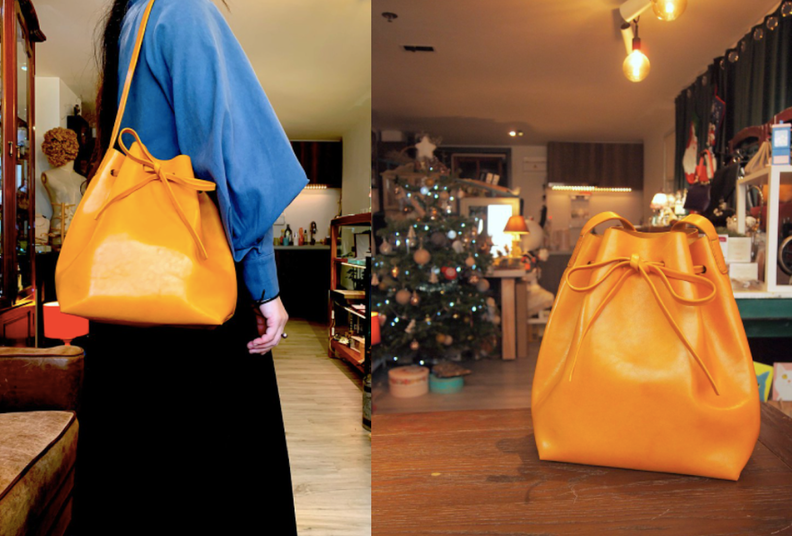 水桶包推薦7:手縫皮革蝴蝶結水桶包