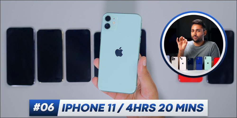這次他測試的手機有 iPhone 13 Pro Max 、 iPhone 13 Pro 、 iPhone 13 、 iPhone 13 mini 、 iPhone 12 、 iPhone 11 以及 iPhone SE(第 2 代),這並沒有包括過去幾年「所有」的 iPhone 機型,如果想對比其他測試結果可回顧他頻道過去其他的測試影片。但每一批測試的條件多少皆有所不同,因此即便是相同機型在不同測試的結果也會有些許差異。