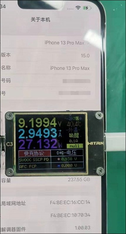 同場加映:iPhone 13 Pro Max 測出快充功率峰值可達 27W