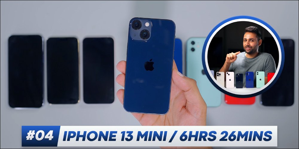 作為今年 Apple 推出的 iPhone 13 系列中最小尺寸的機型 , iPhone 13 mini 搭載 Apple A15 仿生晶片、 5.4 吋超 Retina XDR 螢幕(OLED)、內建 9.57Wh 電池,一改去年 iPhone 12 mini 電池使用續航較差的缺點,測出能連續使用 6 小時 26 分名列第五名,這成績甚至比起 iPhone 12 續航表現更好。