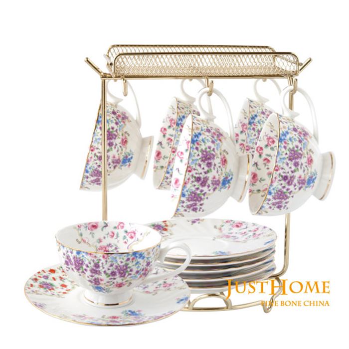 咖啡杯推薦 1:【JUST HOME】幸福花語新骨瓷6入咖啡杯盤組
