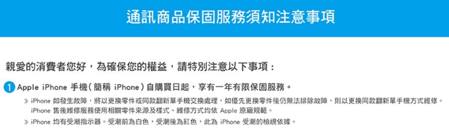 1.Apple台灣iPhone的一年保固規定: