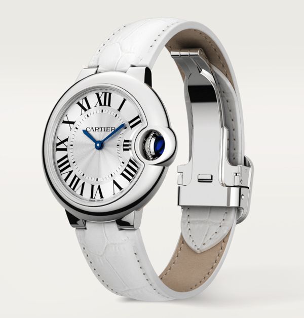 卡地亞最為人知的錶款,除了「Santos」、「Tank」之外,俗稱“藍氣球”的「Ballon Bleu」,同樣也是品牌中的超級經典,「Ballon Bleu」乍看上下皆圓,但仔細一瞧,可是大有學問!流線型的3D立體錶殼宛如一顆鵝卵石,正面與背面都略呈渾圓的弧形;藍寶石水晶鏡面營造出奇妙的光學效果;而最鮮明的特色,莫過於一旁刻意放大凸出的藍寶石錶冠,也因為這典雅卻也趣味的錶盤細節,讓這系列持續保有高度的行情。