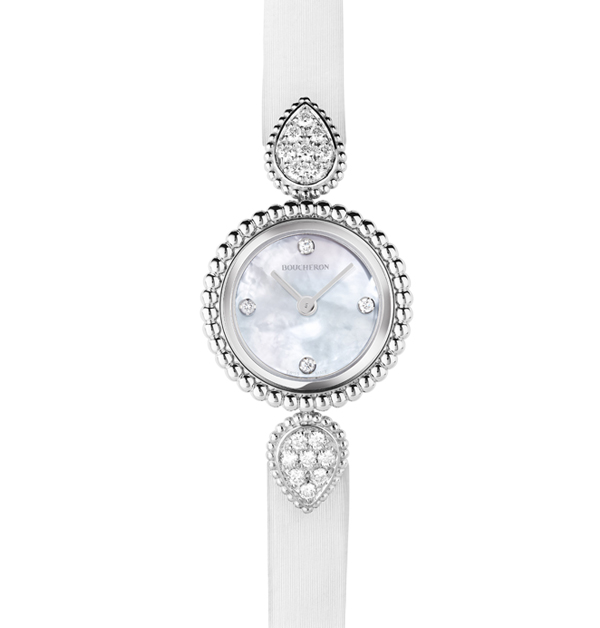 不說你或許不知,擁有許多古代神話傳說加諸於身的「蛇」,亦是法國珠寶暨腕錶品牌Boucheron主要的創作靈感來源!這只「Serpent Bohème」圓型腕錶上的水滴狀銜接鍊節處形狀,令人聯想起獨具特色的蛇鱗紋路,精緻妖嬈;而品牌在多件作品中採以的蜂巢留空镶嵌技藝,其折射出的璀璨光華,也更加突顯了鑽石火光,盡顯精湛非凡的珠寶藝術造詣。