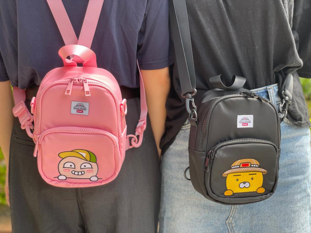 小背包共有黑、粉2款,以刺繡呈現可愛角色,最大特色是可自由調整成雙肩或側背,有多個夾層與錢包鑰匙扣可使用,喜歡萊恩、APEACH的妞妞別錯過啦!