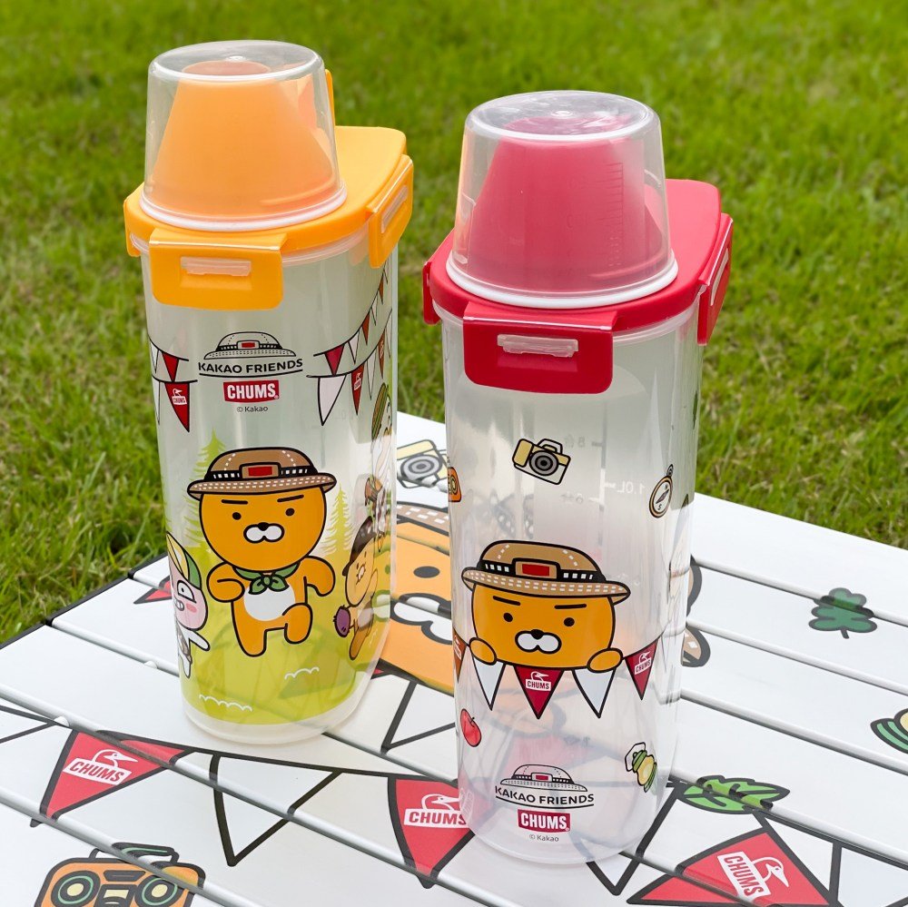 儲物罐共有朋友、萊恩2款可選,容量為2.5L,透明瓶身印著Kakao Friends露營的可愛模樣,側邊特別設計刻度,還有量杯可搭配使用,用來放米、餅乾等食物都很OK哦!