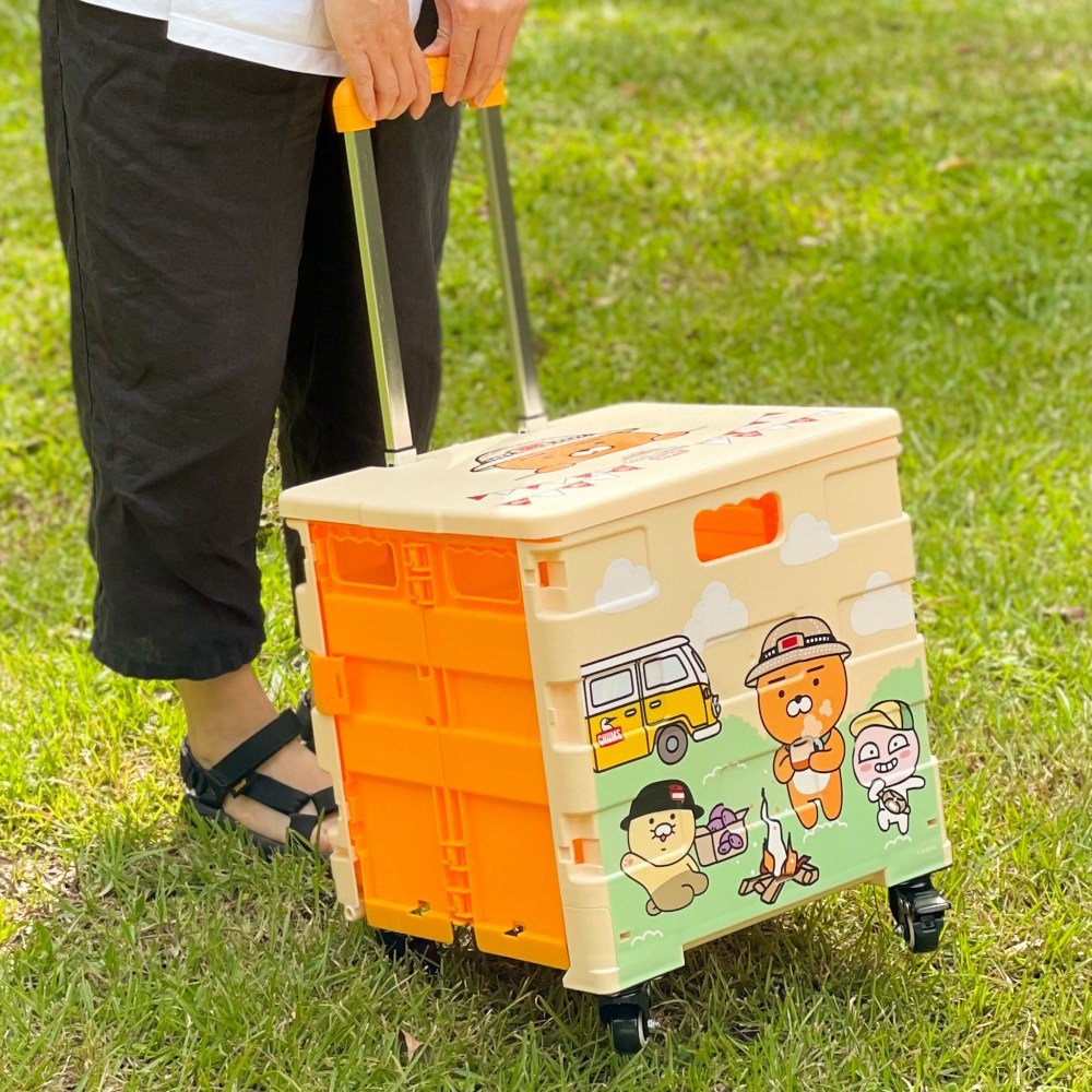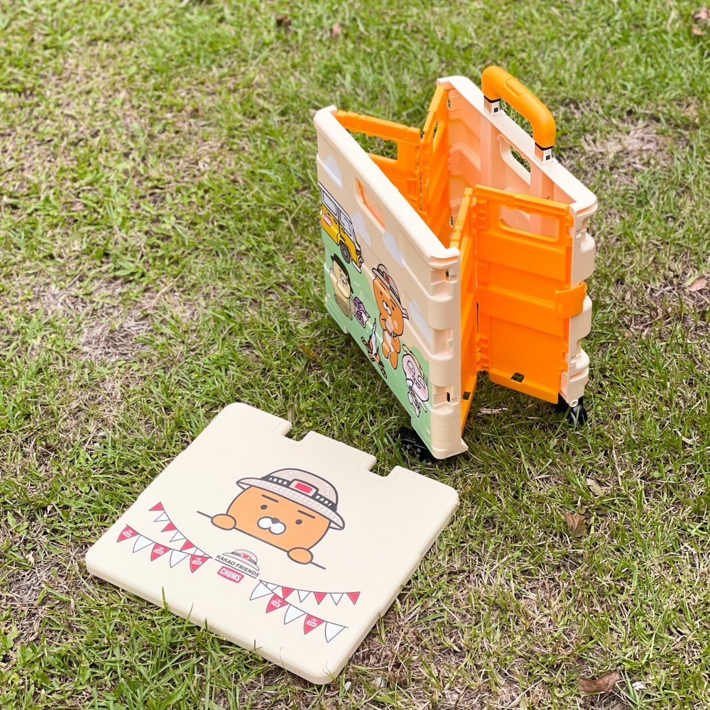 設計繽紛可愛的購物車收納容量為37公升,隨附上蓋,既可收納物品,還能做為小桌子使用,折疊即可收起,不僅野餐或露營必備,平常到大賣場採買物品時,也能派它上場。