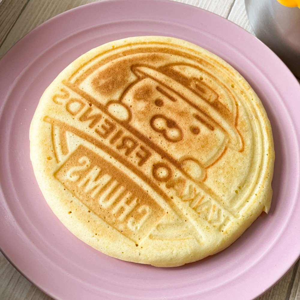 鑄鐵鍋以「探頭萊恩」為圖案,兩側都有鍋嘴便於倒油或湯汁,不僅適合煎蛋等食材,還能做出限定造型的可愛鬆餅。