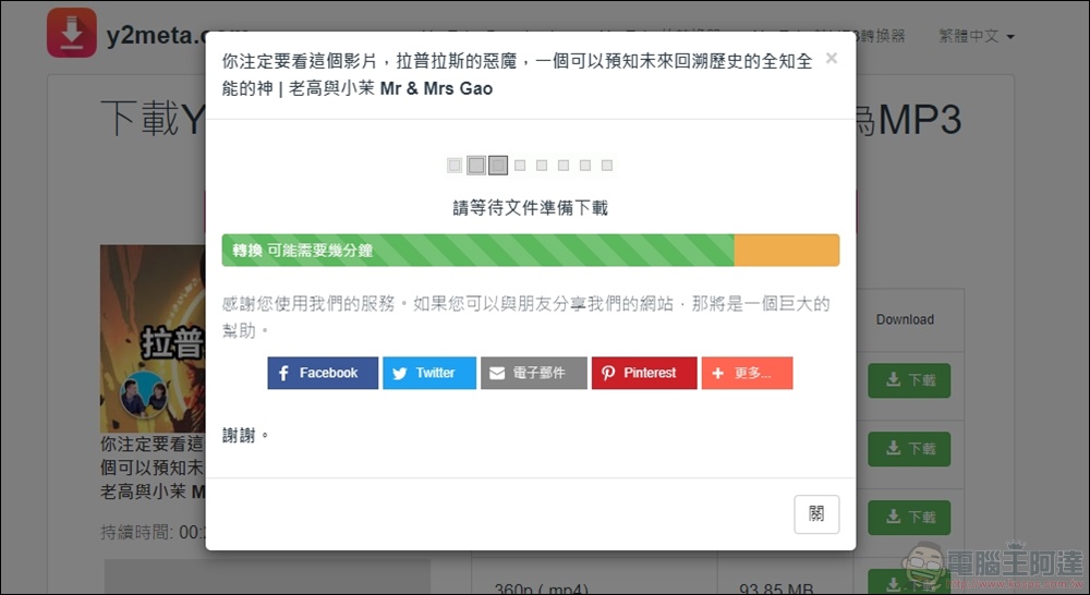 按下「下載」按鈕後,就會跳出轉換的視窗開始準備下載,只需要幾分鐘時間即可。