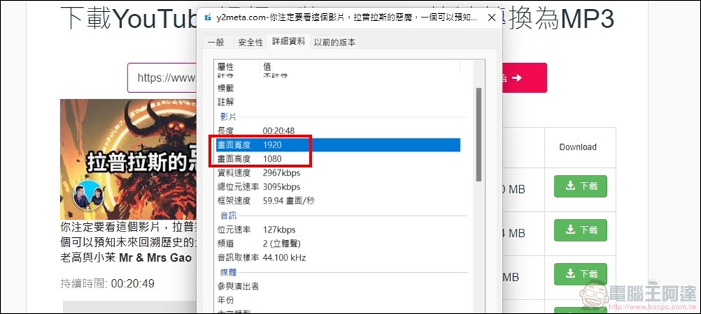 最後看到的影片格式,可以看到真的是 1080p 的高畫質影片,經過播放確認確實影像跟聲音都相當正常。
