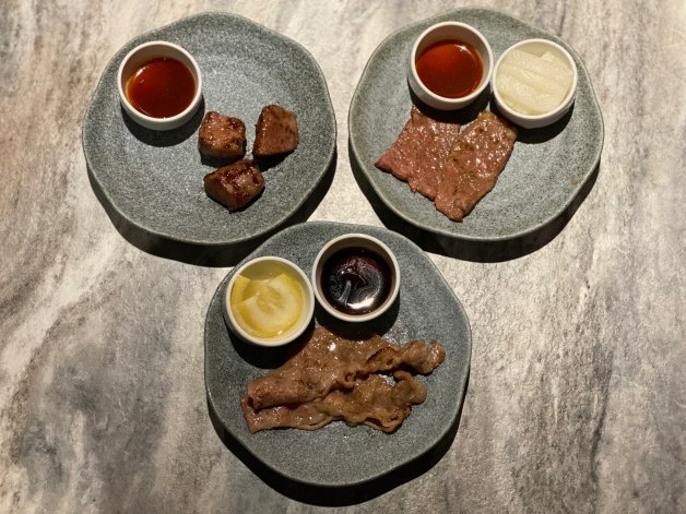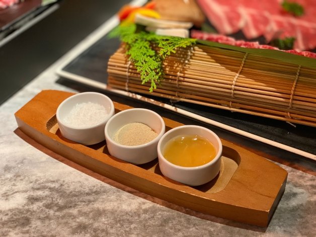 在醬料上「oh my!原燒」一次祭出八種沾醬,除了原燒原有的品項之外,還加入了新口味,分別為水果醬、味噌醬、五味唐辛子、海鹽、芥末醬、鹽之花海、椒鹽芥末粉和柚子醬等,後三者是「華麗巨星鑽切牛套餐」特有口味,除此之外,當然「主廚秘製風味醬」也沒有缺席,不管是要品嚐單吃肉品,還是沾醬都能吃出新口味!