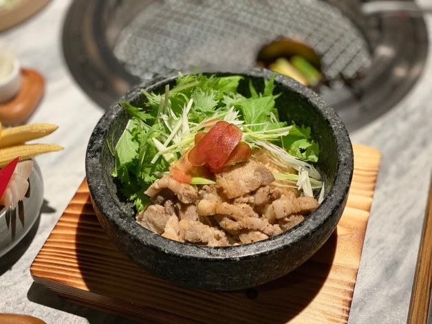 若妞妞們點「霸氣社長A5和牛套餐」,就能享用專人桌邊服務的「和牛握壽司」,在此妞編輯不藏私大公開「隱藏版菜單」,將牛五花和安格斯牛燒烤後沾上主廚秘製醬料,擺放在越光米上方,一碗獨家燒肉飯就上桌,偷偷說飯不要全吃完,可以加入豚骨高湯變成湯泡飯呢!