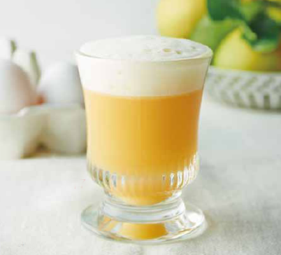 材料:蛋黃1顆、檸檬汁45ml、白蘭地2大匙、蜂蜜1.5大匙、水80ml