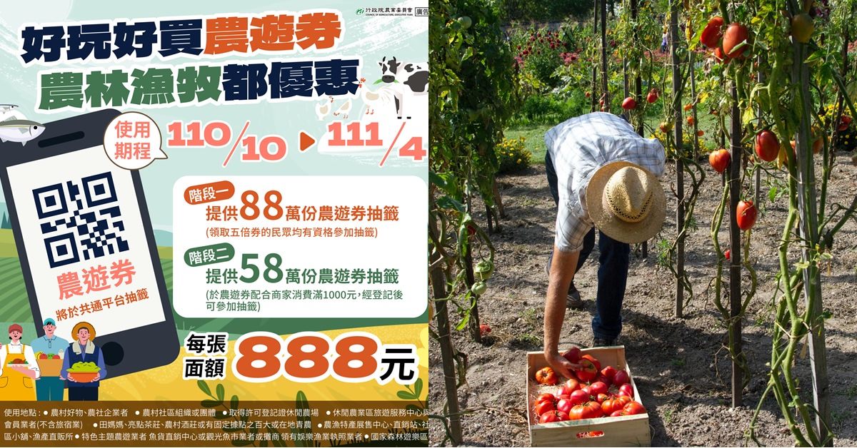 農遊券本次分成2階段抽籤,第一階段將從10/11至11/5四週內抽出88萬份,第二階段則是在明年農曆年後抽出58萬份給符合資格者。什麼樣的人符合資格呢?只要在符合農遊券使用範圍的場所消費滿1000元即可參加抽獎,但這1000元不含農遊券額度,意思就是如果抽中農遊券後想要再來一張,總共要消費1888元。