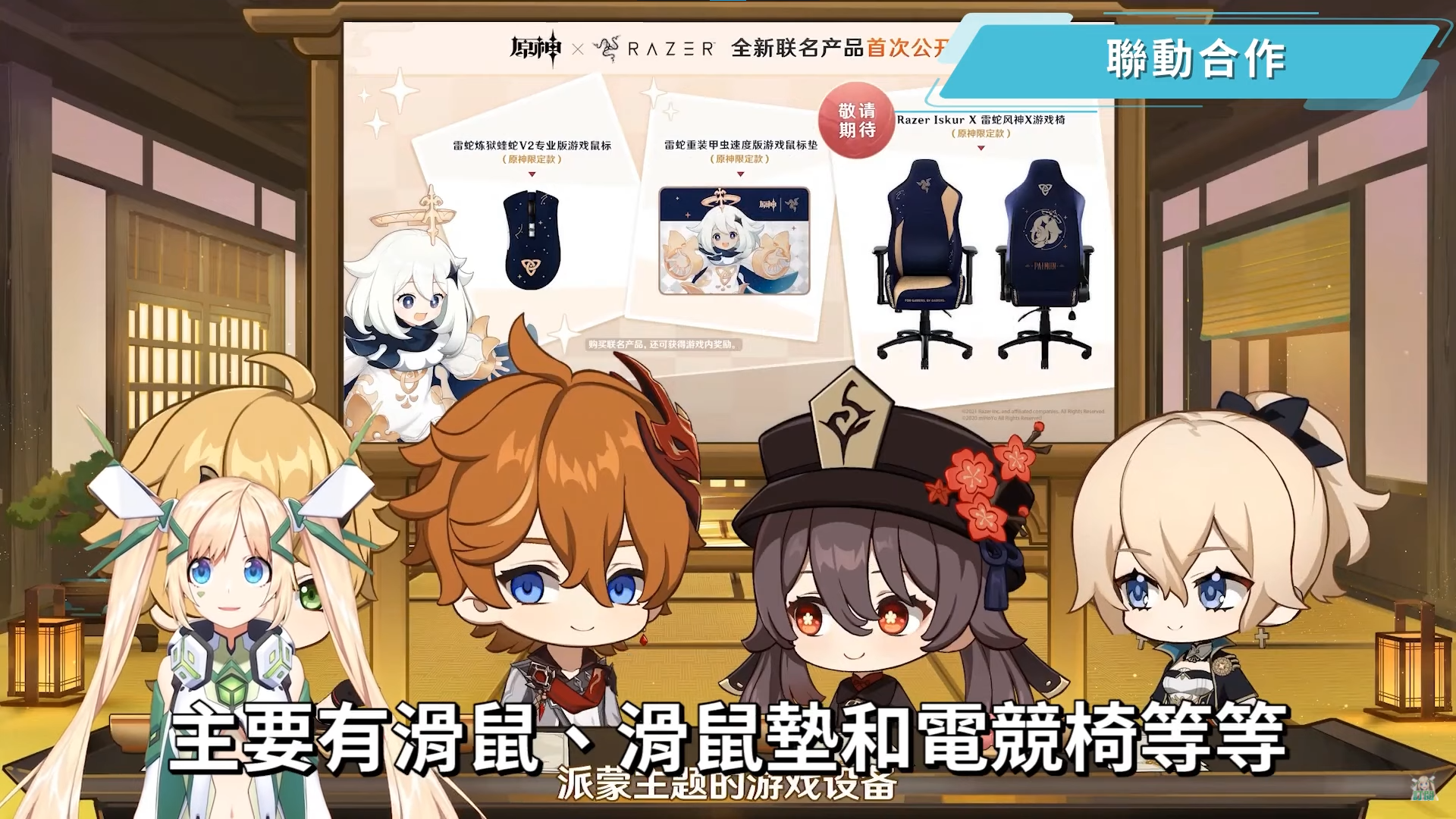 這次原神和雷蛇聯名合作推出相關的電競周邊,主要有滑鼠、滑鼠墊和電競椅等等,價格方面還不清楚,但只要有購買周邊都還可以在另外獲得遊戲內的原石、摩拉或經驗書等獎勵,另外一個聯動夥伴則是與OnePlus會在雙11推出一款Tiffany綠的合作禮盒,禮盒內會有遊戲周邊和遊戲內獎勵。
