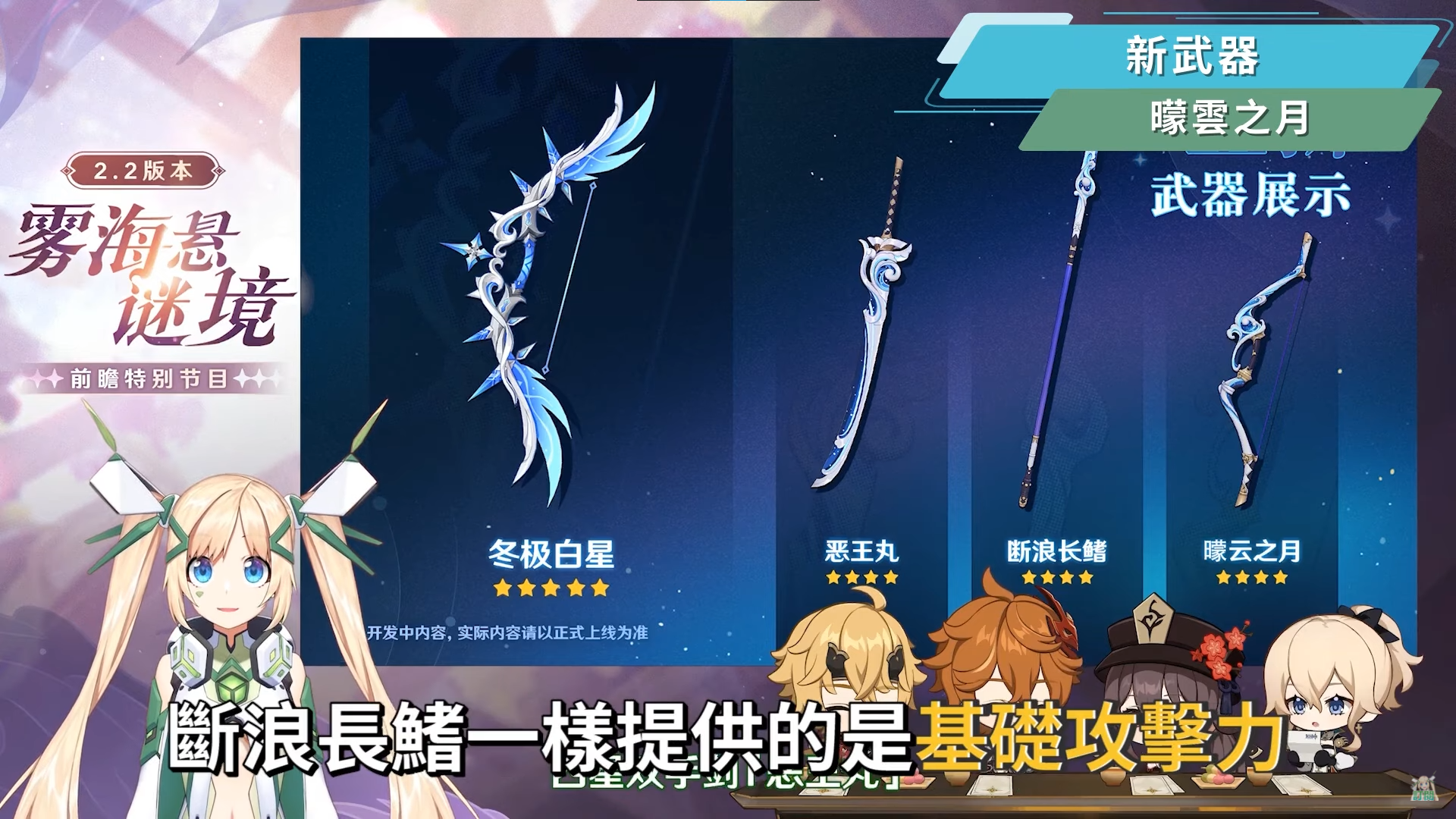 曚雲之月為2.2版本新增的四星弓箭,副詞條和惡王丸、斷浪長鰭一樣提供的是基礎攻擊力,被動效果也和惡王丸和斷浪長鰭一樣,這三把武器主要都是適合靠大招打爆發的角色,若是要讓九條裟羅的大招高倍率打出更高的傷害的話,這把也是可以給九條拿的,其他適合的角色等到時候實裝後再稍微測試一下再分享給大家囉。