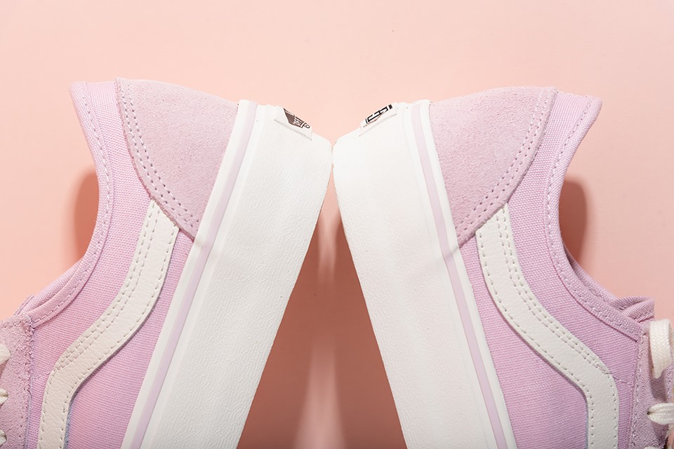 最搶眼的莫過於鞋頭的設計,有別與以往Vans窄頭設計,這雙大走偏圓楦頭。這樣的改版,意外的顯腿長、細的效果;尤其個人大愛這種包邊鞋頭,就算常蹲姿,也不因擠壓鞋頭,使鞋邊有龜裂的跡象。