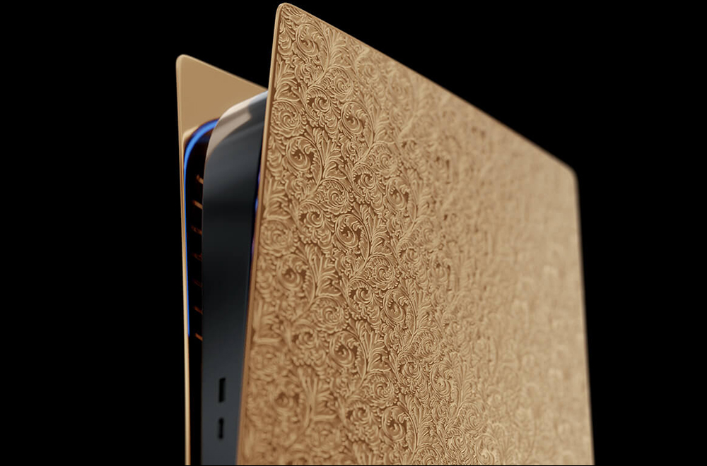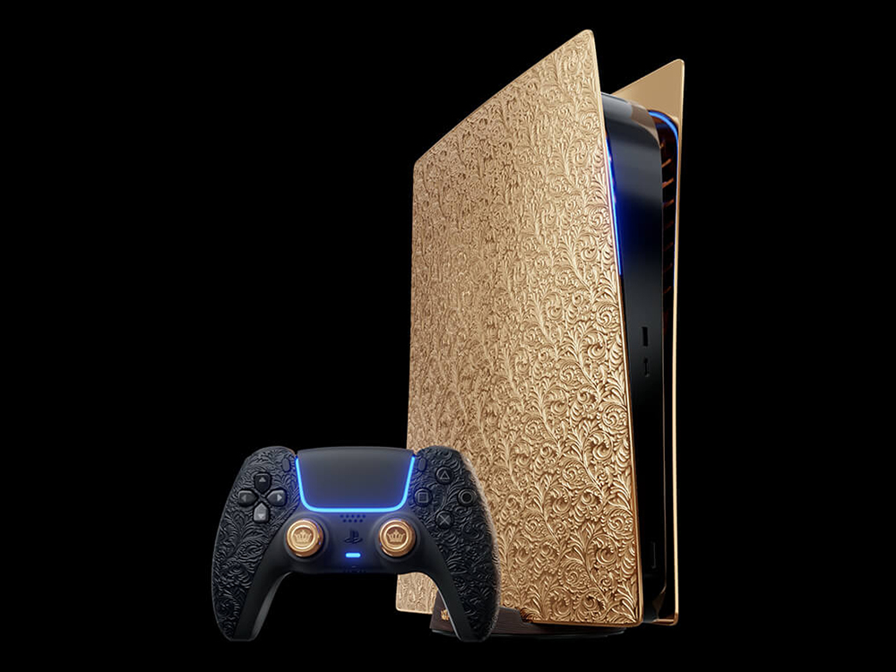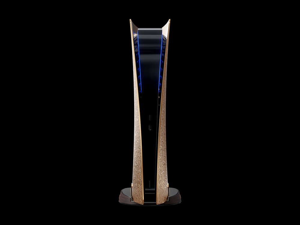 PlayStation 5 Gold Prime Edition 將原本 PS5 白色的塑料飾板改為採用實心的 18K 金打造,呈現滿滿的土豪氣息(?)