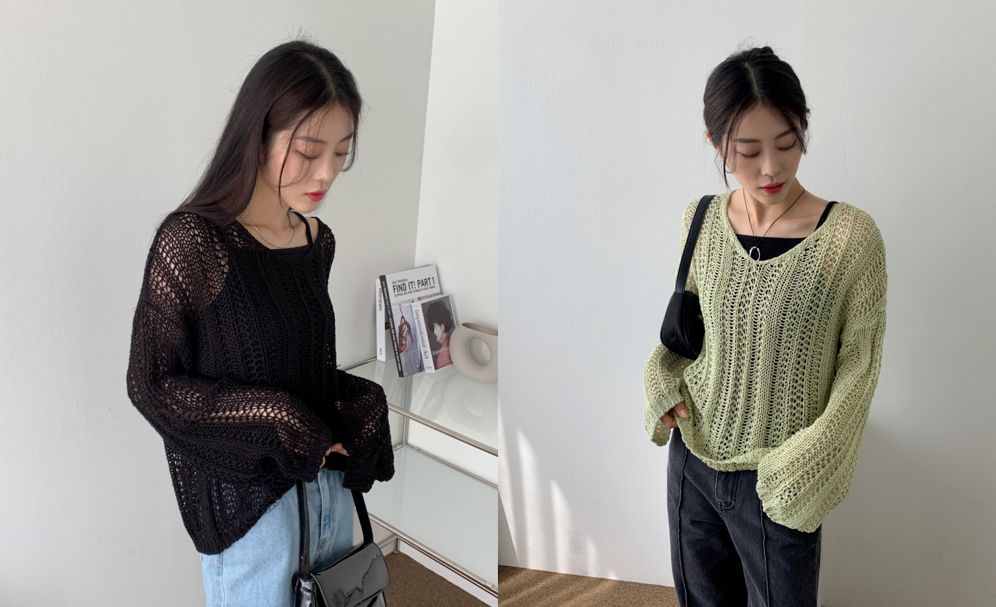 初秋之際,天氣依舊炎熱,但早晚已經有點涼爽,這種寬鬆的針織上衣就很適合這時候穿,而且不同顏色的針織上衣也可以穿出不同感覺。搭配不同的下半身單品,就可以穿出自己的風格。