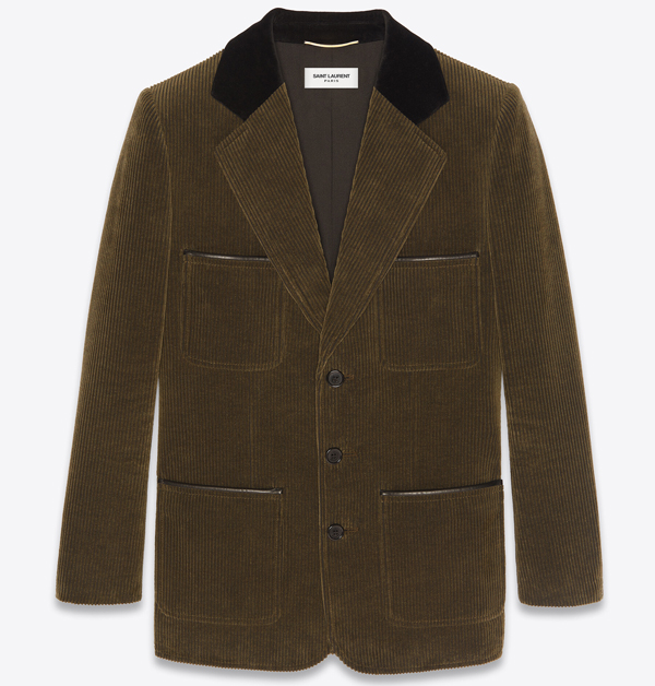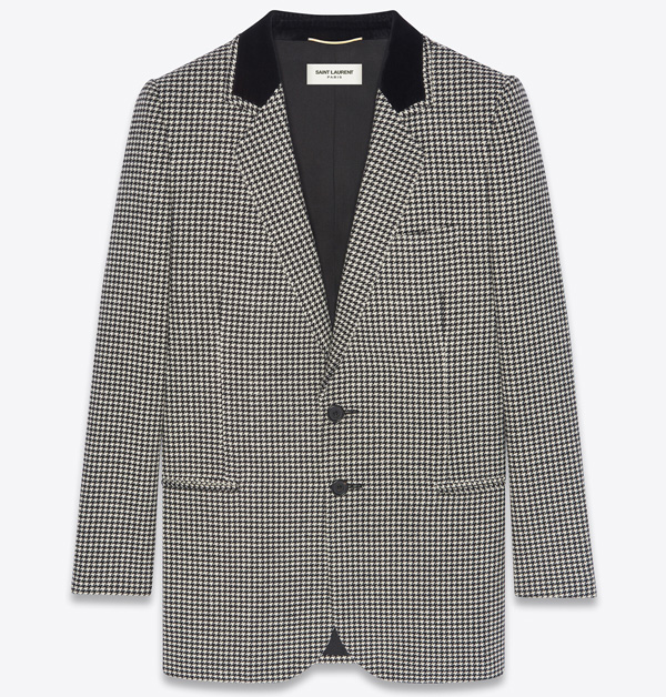 2021年秋冬,除了延續黑色經典西裝外套的輪廓,更增添了燈芯絨、威爾斯格紋與千鳥格粗花呢等秋冬面料新款,豐富西裝外套的選擇性,因應各種不同場合。「Le Smoking 吸煙裝」承襲巴黎訂製時裝文化,以傳統裁縫工藝為精神,墊肩由裁縫工匠以手工剪裁製形,西裝袖縫合、前胸口袋與緄邊覆蓋口袋皆仰賴嫻熟的訂製技藝,並以手工縫製精緻金屬鍊與絲質的“Saint Laurent”刺繡標牌,創就聖羅蘭每件剪裁精良考究的西裝外套。
