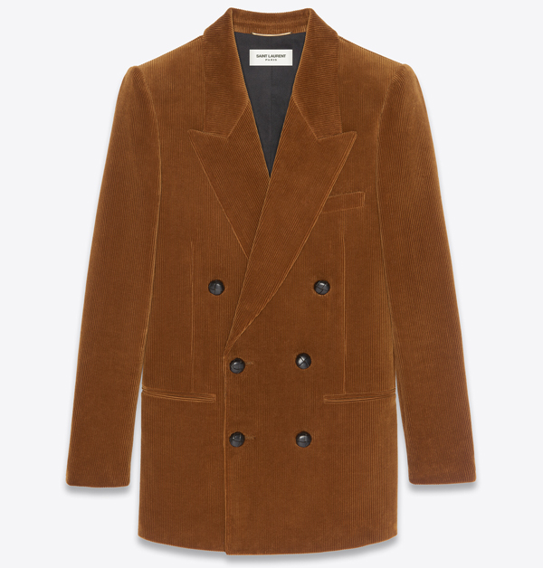菸草棕色燈芯絨雙排扣西裝外套,NT$ 98,200。