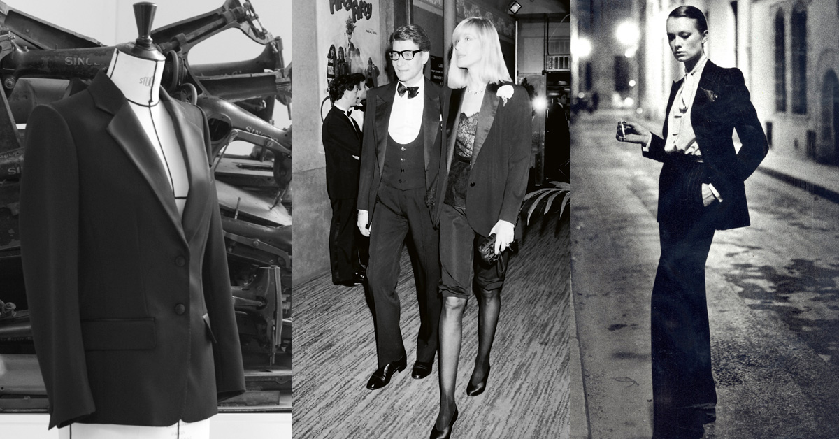 創辦人聖羅蘭先生(上圖中)曾說:「對於任何一個女性來說,『Le Smoking 吸煙裝』都是一件不可或缺的裝扮。穿上它,一個女人就能永遠置身潮流之中,因為它體現的是風格,而不是曇花一現的潮流;雖潮流易逝,唯風格永存。」