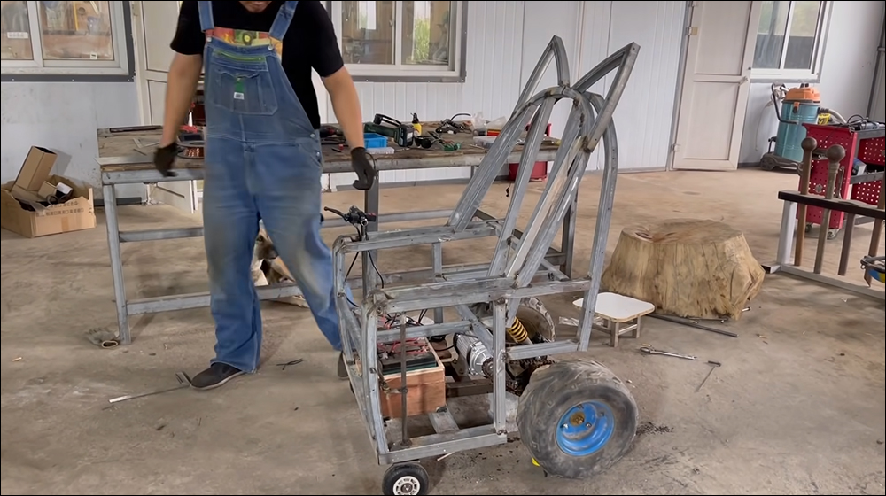 再來就是驅動的部分,手工耿打造了一輛單椅的電動車。