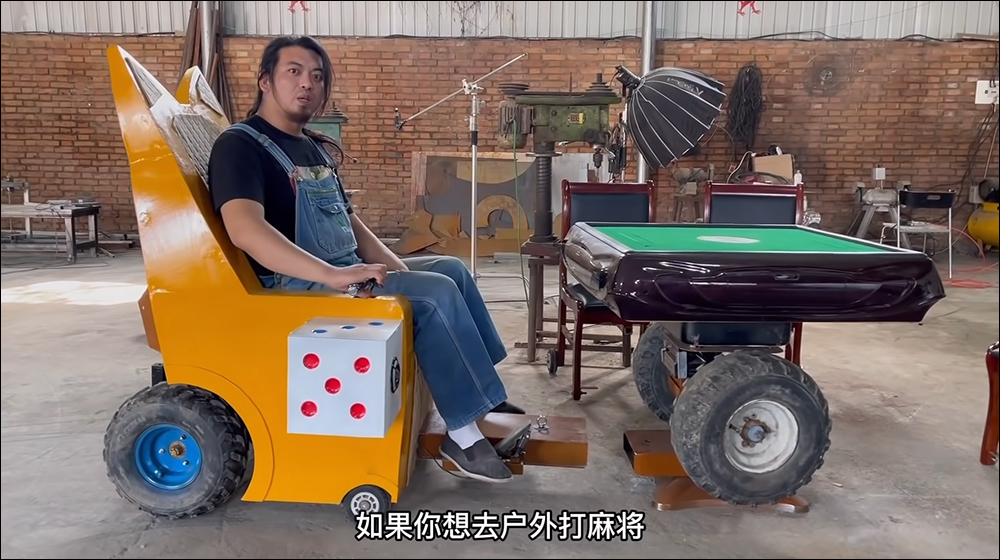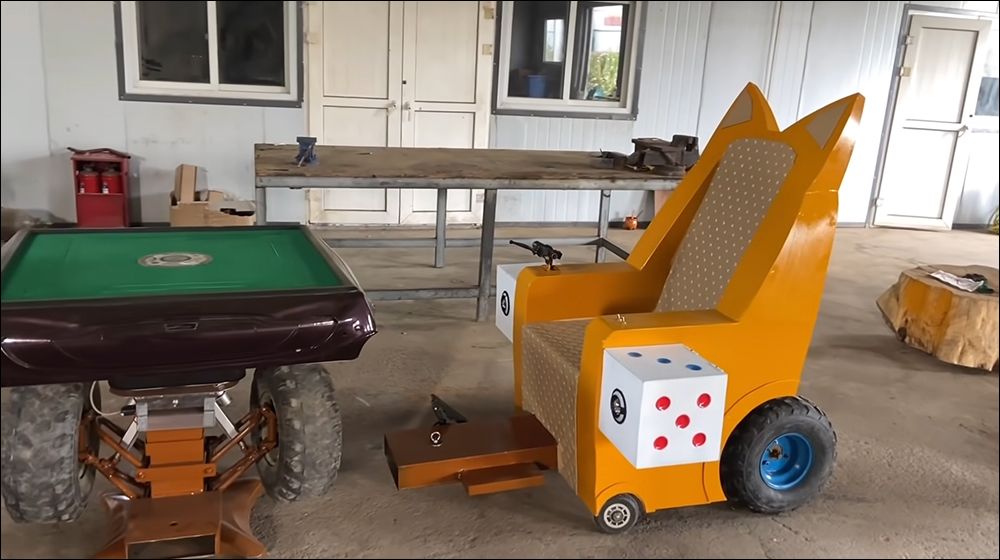 最近來自中國的手作達人「手工耿」就自製一台戶外麻將車,將電動車和電動麻將桌結合,還能拖著其他三張椅子載著朋友一同到野外看風景、打麻將!