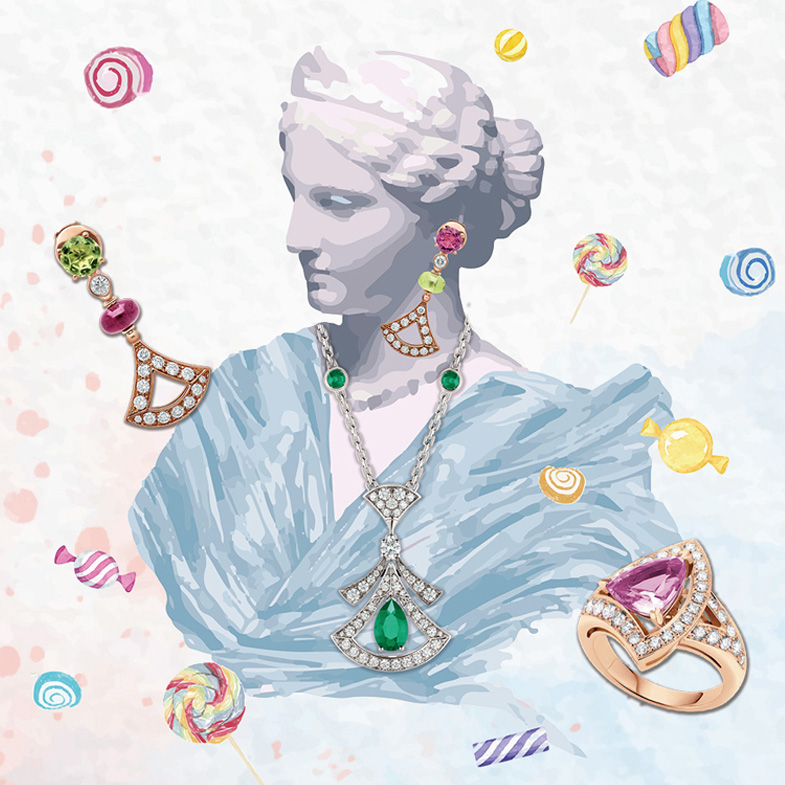 「Divas' Dream」系列作品, 靈感除了是以女性為繆思之外,也凝聚寶格麗的三大DNA元素:「羅馬、色彩、自然」。除了定期推出具有不同貴重寶石鑲嵌的日常珠寶與腕錶⋯等款式設計,更開始跨足了頂級珠寶領域,多元展現該系列產品面的豐富度及市場定位。
