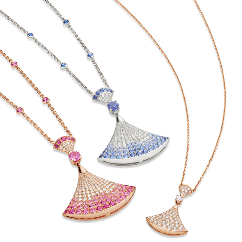 「Divas' Dream」源自羅馬卡拉卡拉浴場馬賽克地磚圖騰的「扇形」設計,俐落又柔美的線條,不僅深具特色,亦成為初入手寶格麗珠寶的經典系列。並透過近乎苛求的鑲嵌工藝細節,與彩色寶石或鑽石的相互輝映,如夢似幻的「Divas' Dream」總能恰如其分地,予以女性愈發耀眼的魅力。