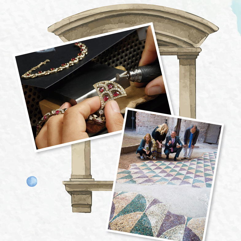 當年,能夠容納千人以上共洗浴的「卡拉卡拉浴場」,可說是古羅馬時期最奢靡、浮華的代表之處。時過境遷來到現代,僅管只剩下巨大的牆體、拱門⋯等建築殘骸,但遊走在這些堅固的殘垣斷壁間,我們依舊能感受到的「卡拉卡拉浴場」所帶來的龐大體量及震撼光景,予人無限想像。同樣象徵義大利文化及羅馬精神的百年珠寶暨腕錶品牌寶格麗,便循此歷史軌跡,藉用該浴場宛如孔雀開屏的馬賽克「扇形」地磚圖騰,將之幻化為美麗與浮華的象徵,於2013年起發表了以此 為造型輪廓的「Divas' Dream」珠寶及腕錶系列。向女性之美的百變風貌致敬之餘, 同時歌頌羅馬歷久不衰的文化魅力,彼此相互輝映。
