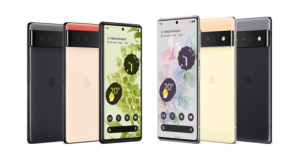 Pixel 6 售價定為新台幣 18,990 元(128GB)與 21,990 元(256GB);Pixel 6 Pro 售價定為新台幣 26,990 元(128GB)與 29,990 元(256GB)。 在顏色選項上,Pixel 6 推出海沫色、珊瑚粉和風暴黑,Pixel 6 Pro 則有陽光黃、雲霧白和風暴黑。即日起台灣消費者可在 Google 商店、台灣大哥大門市、線上通路 myfone 購物、momo 購物網、 PChome 線上購物與蝦皮商城預購最新 Pixel 6、Pixel 6 Pro ,10/28 起可在上述通路購買 Pixel 6、Pixel 6 Pro。