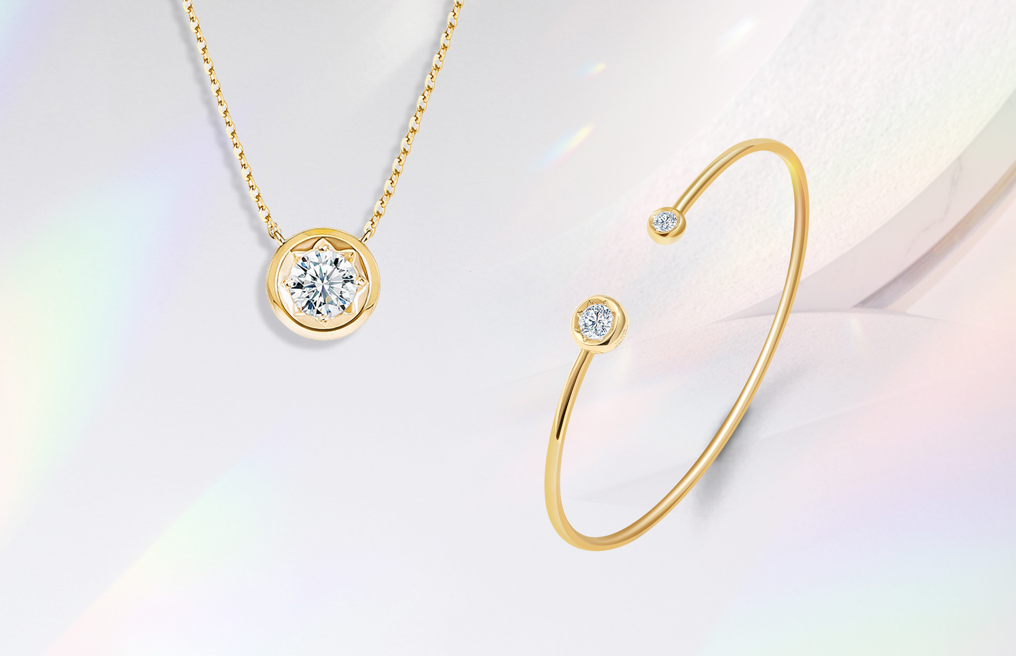 設計靈感來自加州的暖陽,以18k金刻出八道凹槽,模擬太陽向外放射的陽光,反覆折射鑽石光芒。無論世界如何變化,你就是永恆閃耀的那道光芒。