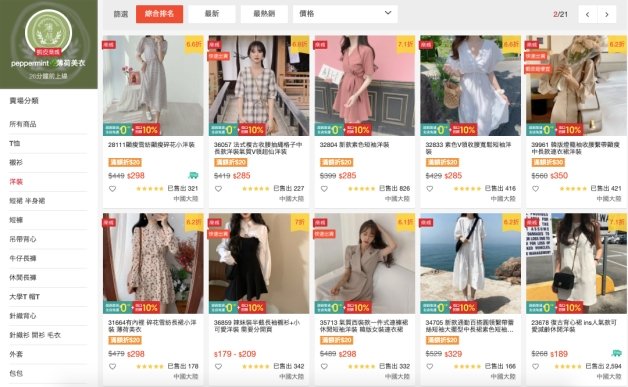 「peppermint薄荷美衣」賣場品項超級多,滑都滑不完,而且價錢幾乎清一色都是百元價,編輯實際問過買過的周圍友人們,不管是衣服質感,還是布料材質,大家都是豎起大拇指的一致好評!就算月底也能無壓力清空購物車,深受學生族群與小資女孩的喜愛,難怪能夠突破40萬人追蹤,唯一美中不足的一點大概就是它是從中國發貨,等待時間較難準確預測。