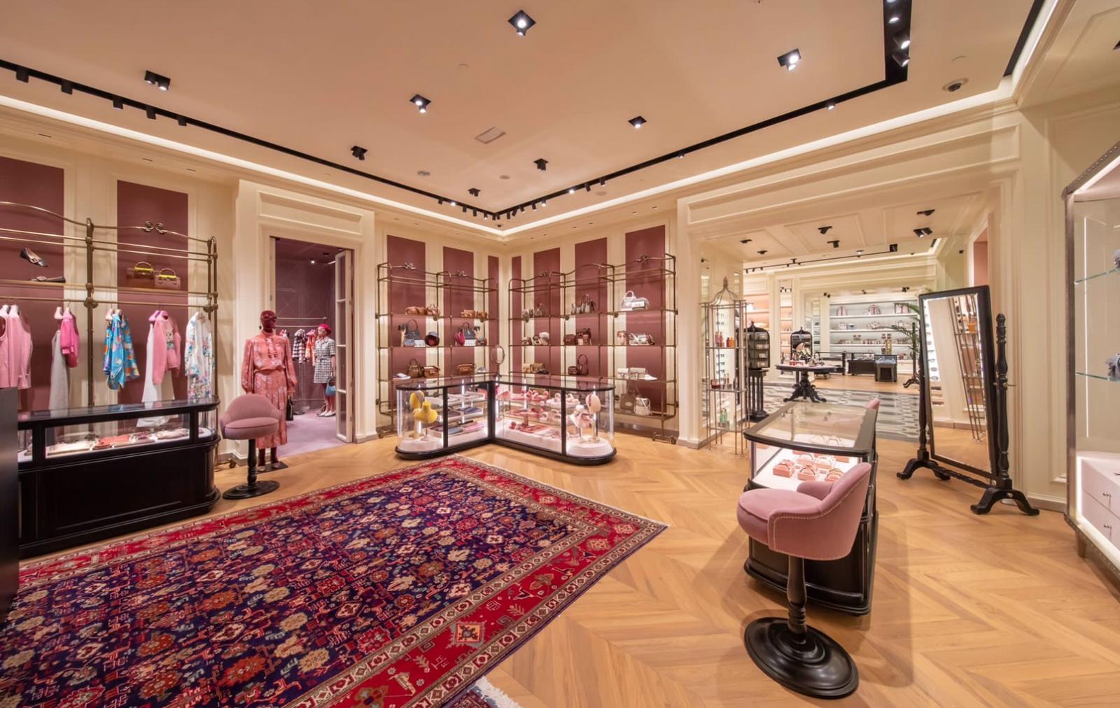本次Gucci新光三越台南新天地專門店最大特色,就是在店外觀換上由創意總監Alessandro Michele親自挑選的幾何切割大理石裝潢,並且將店內分成三個區域。首先,一走進店裡映入眼簾的是擺放當季重點商品的女性皮件區,右轉則會看到擺滿GG Supreme老花包、Gucci Off The Grid再生尼龍包和各類球鞋的男性配飾區,再往反方向走則會看到以粉色系為主調的女性服裝暨配飾區,舉凡鞋履、皮件、眼鏡、珠寶、腕錶及香氛系列,所有女孩子最想要的夢幻逸品你都能在此找到,且並備有一間VIP室,讓你輕鬆換裝安心購物!