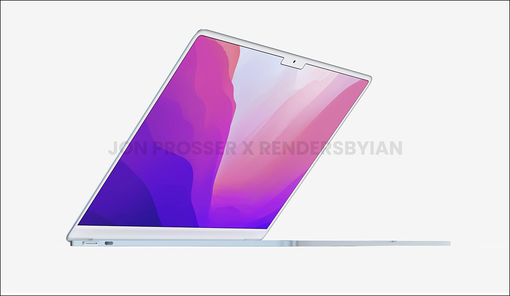 MacBook Air M2 全新外觀渲染圖曝光:瀏海螢幕、MagSafe 3 磁吸充電、白色鍵盤與螢幕邊框
