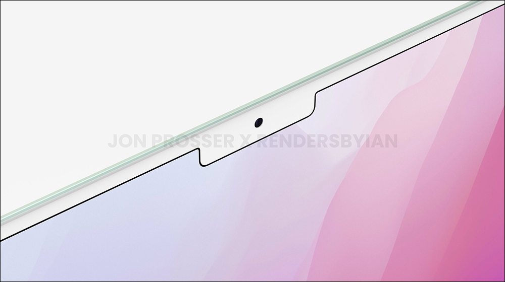 螢幕方面則搭載窄邊框設計, Ian Zelbo 的設計圖也將它設計為和 MacBook Pro 一樣的瀏海螢幕,在螢幕缺口的位置則配備 1080p 解析度視訊鏡頭。