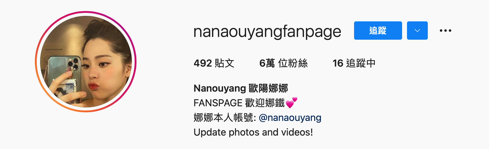 傳出兩人正在秘戀的消息,只因歐陽娜娜的小名為「娜比」,甚至連IG名稱也標示為「nabi」!
