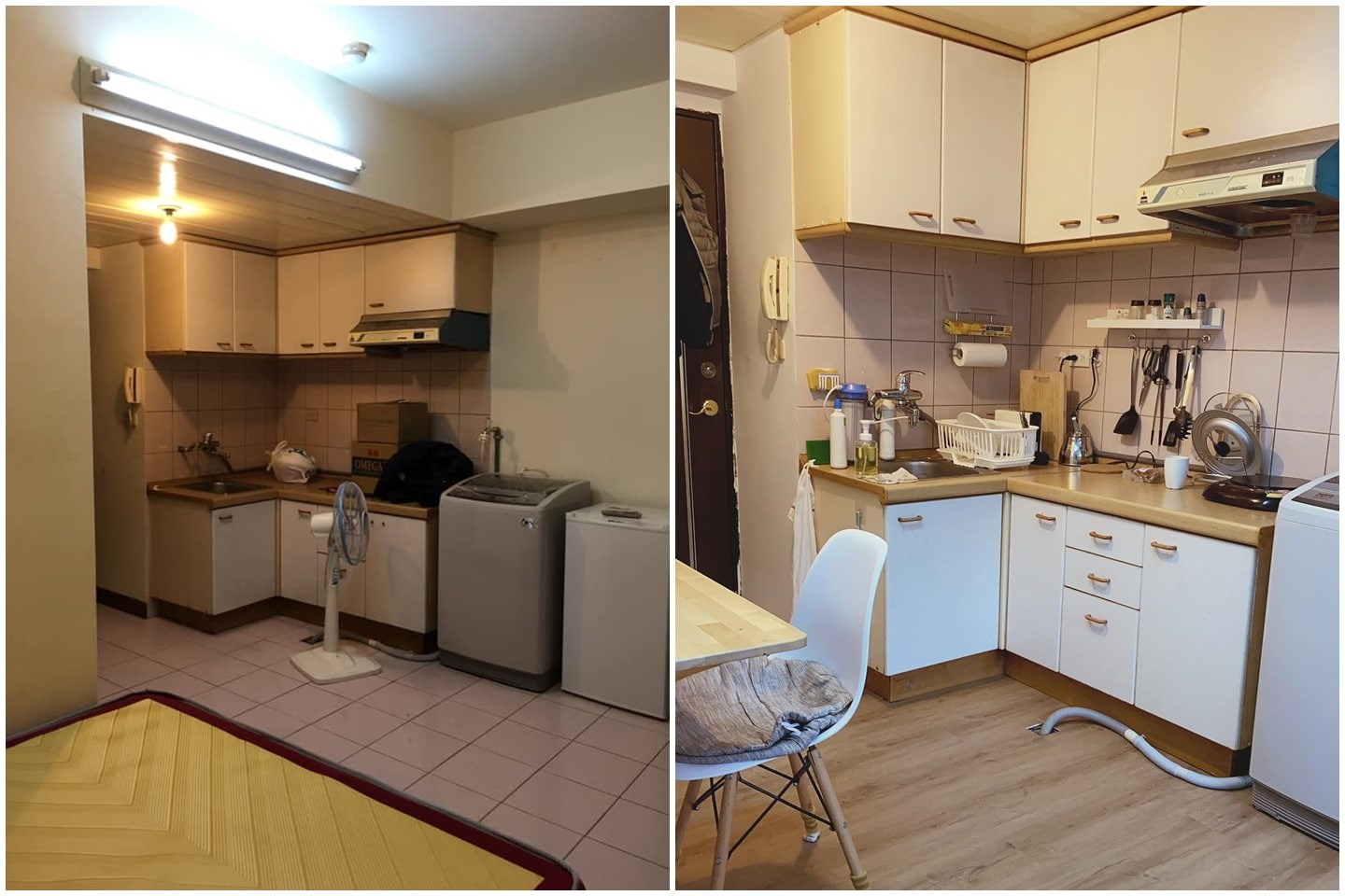 當初在蓋這棟大樓的時候,房東特地挑選了粉色磁磚,房東說這磁磚超美、有特色,不怕髒又好清理,但身為租客的她不喜歡粉色,因此需要改造。
