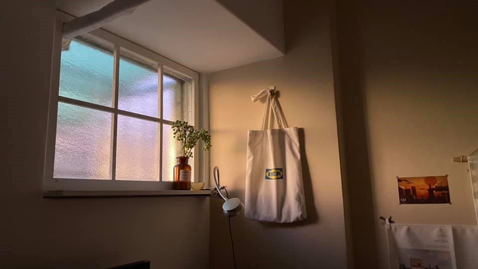 此外,她早上都會被光線亮醒,所以加裝了窗簾,夜晚睡前會拉上,白天就拉開享受太陽光。甚至她有次清晨睡不著,一張開眼就看到了夢幻芭比色的窗景,於是趕緊把美麗的景色拍下來。她覺得冷氣孔在改造後,最大的差別是,以前白天坐在電腦前要開燈,現在大概下午 4 點後才需要開燈,房間採光的前後差距蠻大的。