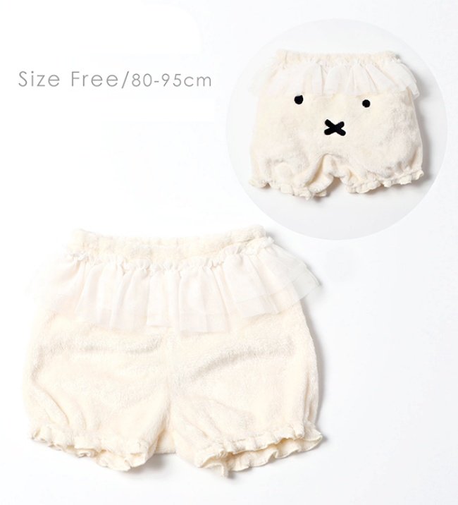 其中還有直接印著米菲兔招牌特寫的洋裝以及褲子,一樣用招牌毛茸茸感雪白配色打造而成,搭配夢幻的透紗細節,甜美指數破表!短褲的後面還藏著可愛的米菲兔特寫,幫小孩套上直接變身,超想整隻抱緊處理(笑)~