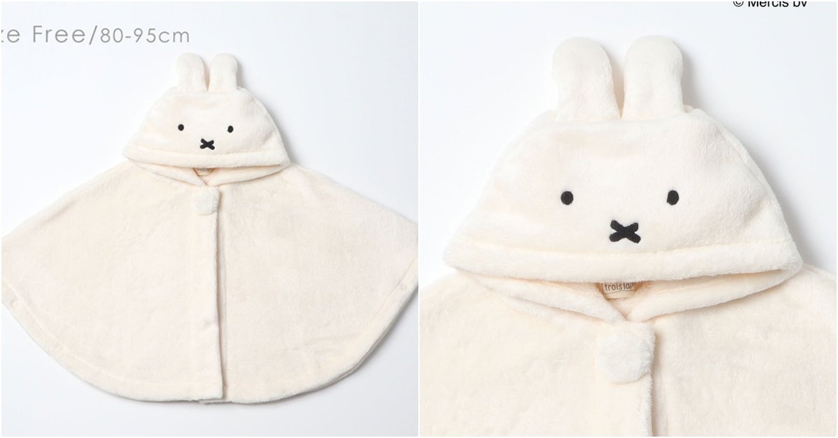 米菲兔大頭系列還貼心配件,讓媽咪們直接收一整套(抖),加入毛球的圍兜以及多用途披風都是用親膚柔軟的材質製作,聯名披風可以從6 個月左右一直用到2 歲半,裹著襁褓、外出穿搭或是當作毛毯保暖都行!(目前披風已經被日本媽咪搶到缺貨囉XD)