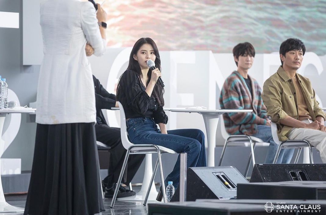 如果熟悉韓韶禧的粉絲,一定知道她自己本身就是純黑系穿搭專業戶,不同於其他韓國女星喜歡走傻白甜路線,無論是出席代言活動或是替新片宣傳,她幾乎都會以黑色裝扮現身,近期最具話題性的就是她為了宣傳《以吾之名》換上這件黑色荷葉露肩洋裝,我們也非常推薦想在秋冬季靠穿搭藏肉肉的女孩,可以選擇這類結合垂墜感、荷葉細節、抽繩設計的修身款式。
