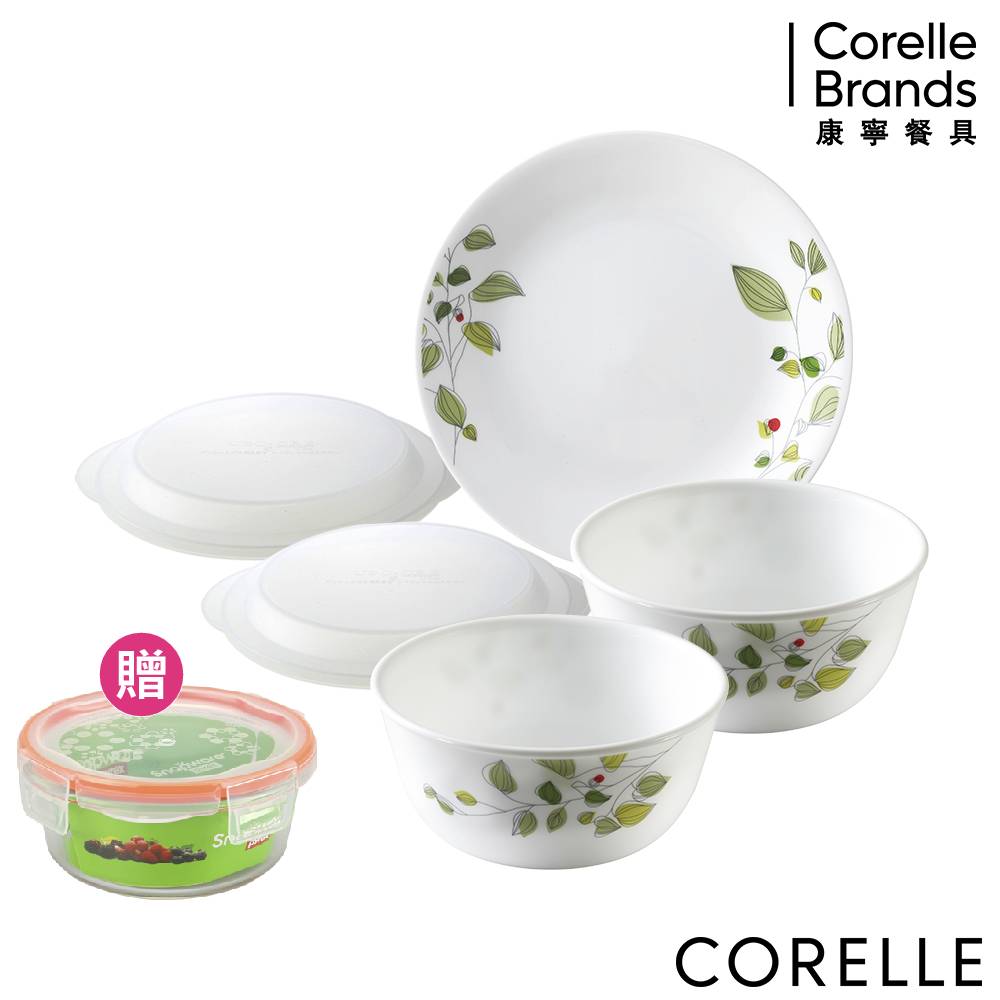 CORELLE 康寧 薰衣草園5件式碗盤組加贈保鮮盒