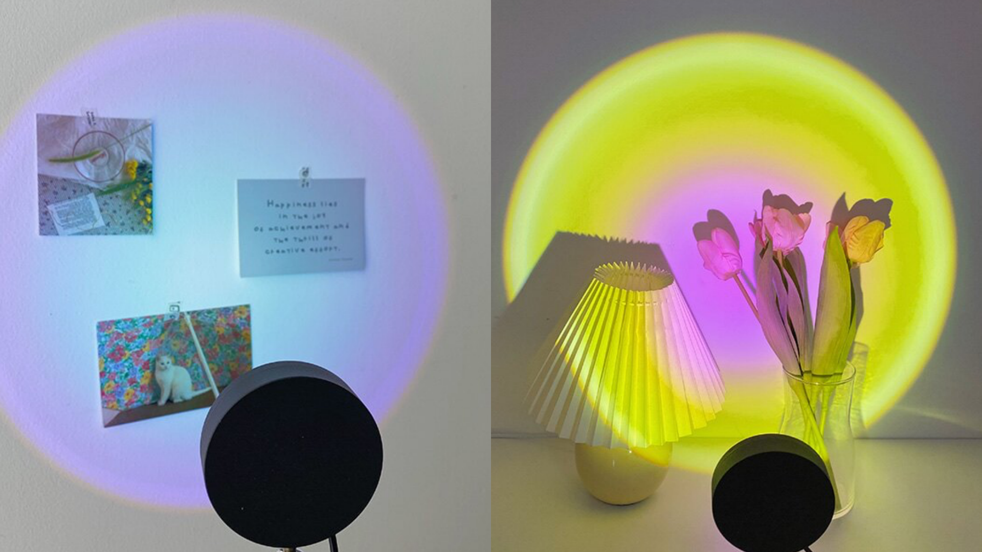 日落燈是指利用光線投影,將夕陽餘暉呈現出來的燈具,款式及高度選擇相當多,連投影出的顏色也很豐富,從橘色、藍紫色到彩虹光束都有~放置家中也能提升居家質感,除了滿足各種氛圍外,使用方式很簡單!