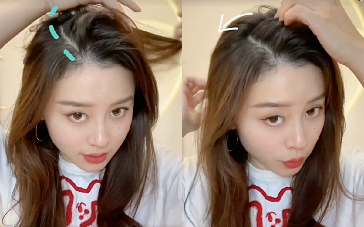 另外透過簡單的分線小技巧,其實也可以最大限度修飾分線禿、寬髮縫!