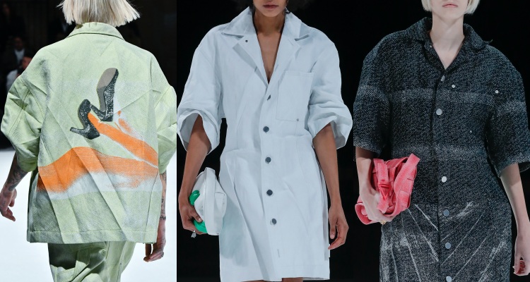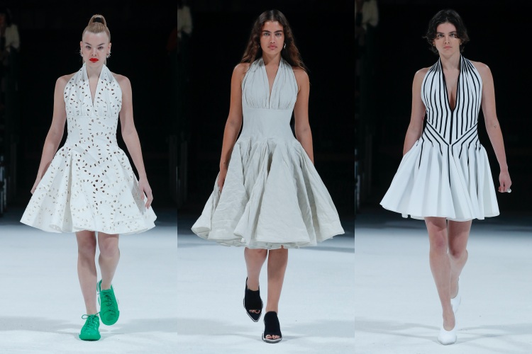 延續份量感的設計,回顧 Salon01、Salon02 的發表,不難發現當時的服裝廓形依然保留著歐洲審美,以修長合身的方式展現好比例,但在本季,Daniel Lee 打破這個規則,大量鬆身剪裁成為重點,許多洋裝也透過落肩及鬆身的線條,展現了美式服裝一向強調的舒適性。