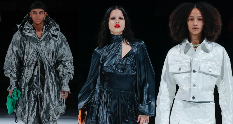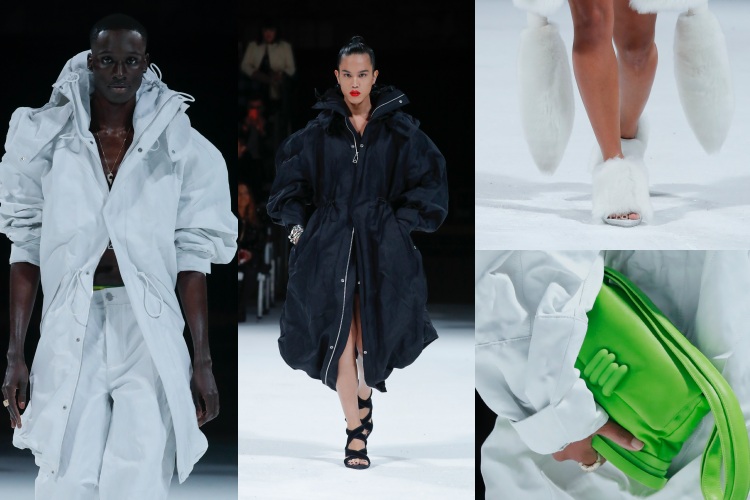 品牌母公司開雲集團在近年來不斷強調環保,在 Bottega Veneta 這次的秀場上,可以看見運用科技面料取代過往常見的皮革,這樣大幅縮減皮料的運用,此舉除了能減低鞣製時代來的污染,現今可將科技面料重新運用的特性,更讓這些服裝能具有永續的價值。
